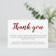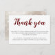 Esta elegante tarjeta de agradecimiento de rojo oscuro para el funeral es una hermosa manera de dar gracias a la familia y amigos que han dado su amor y apoyo durante estos difíciles tiempos. Personalice el diseño con sus propias palabras más sentidas.