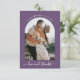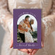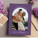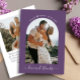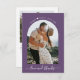Minimalista Elegante Boda de fotos Arco Leído Mano 2 Gracias Tarjeta en color malva morado. Elegante boda de agradecimiento plantilla de tarjeta con una foto (forma de arco) en la parte delantera y una foto en la parte posterior. Con el texto "Amor y agradecimiento" en una caligrafía con letras a mano rápida o tipografía tipo letra en color blanco sobre fondo malva o polvoriento morado. Fácil de personalizar con el nombre y el mensaje de agradecimiento. Si necesita ayuda o un elemento que coincida, póngase en contacto con el creador.