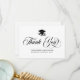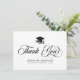 Envíe una elegante tarjeta de agradecimiento a su familia y amigos por su apoyo. Este sencillo diseño cuenta con un guión moderno que dice "Gracias" con una tapa de grad negro y tu nombre, escuela y año para personalizar. La parte posterior de la tarjeta tiene un mensaje que usted puede personalizar junto con su firma. ¡Felicidades por tu graduación! Diseñado por Susan Coffey.