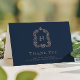 Gracias a sus invitados de graduación con estas elegantes tarjetas de agradecimiento color azul marino y polvoriento rosa rosa, que incluyen un clásico monograma inicial dentro de un escudo vintage. Las palabras "gracias" aparecen en la tipografía decorativa de contorno. Añada su nombre, escuela y curso a continuación. El interior de la tarjeta está en blanco para que pueda agregar una nota personal manuscrita a cada amigo o miembro de la familia.