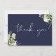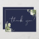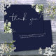 Con delicada vegetación acuarela y elegante guión de agradecimiento en un fondo azul marino. Puede personalizar con su propio mensaje de agradecimiento al revés, o si prefiere agregar su mensaje manuscrito, elimine el texto. ¡Una forma perfecta de agradecerte! Diseñado por Thisisnotme©