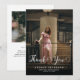 Este moderno, elegante, minimalista foto graduada gracias incluye una foto retrato delante y una foto detrás. "Gracias" escrito en un guión elegante. Personalízalo con tus detalles y dos fotos favoritas.