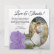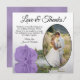 Estas hermosas tarjetas de agradecimiento boda son una manera maravillosa de mostrar su aprecio a sus amigos y familia por celebrar con usted en su día especial. Presentan la foto de su boda en un marco ovalado con un único rosa de color púrpura de lavanda de tallo largo sobre su lado reflejando en el agua. El título dice "Amor y Gracias" con espacio para una nota y firma personalizado. Clásicas, románticas y sofisticadas, estas tarjetas son la manera perfecta de concluir su celebración boda.