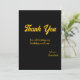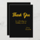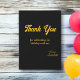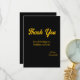 Esta elegante tarjeta de agradecimiento en negro y dorado es perfecta para un cumpleaños moderno. el diseño sencillo incluye una caligrafía dorada elegante sobre un fondo negro.