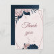 Tarjeta De Agradecimiento elegante marina y flores rosa polvorientas geométr