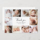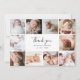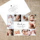 Una hermosa y elegante tarjeta cuadrada de collage de fotos perfecta para agradecer a los invitados de la ducha de bebé por los regalos, el amor y el apoyo recibido. El diseño moderno incluye un collage de fotos de 10 personalizables cuadrados. En el centro hay un mensaje de "gracias" en un guión con letras a mano de moda y el nombre y fecha de nacimiento de su bebé, con elegantes letras clásicas. En la parte trasera está tu mensaje de agradecimiento de personalizable con letra clásica. A través del botón "personalización" se pueden reemplazar las fotos y cambiar el texto.