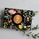 Tarjeta de agradecimiento profesional de la moda de vidrio con un patrón de pradera de flores silvestres de moda y un círculo dorado de cobre sobre un fondo negro moreno. Blanco claro en el trasero. +++++++++++++ Personalízalo con su nombre de negocio!