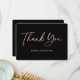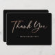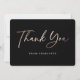 Expresa tu gratitud con esta tarjeta de agradecimiento minimalista, pero elegante, negra y dorada rosa que presenta una fuente de escritura moderna con relieve en lámina de oro rosa en la parte delantera y texto personalizado en la parte trasera.
