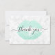 Bonito Gracias por el diseño de la tarjeta con finos labios de purpurina verde de menta, elementos de mármol blanco y una elegante fuente caligráfica.