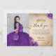 Tarjeta De Agradecimiento Elegante Quinceañera Cumpleaños Foto Púrpura y Dor