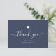 Esta nota de agradecimiento de boda con corazón azul marino chic moderno presenta caligrafía manuscrita junto a sus nombres en tipografía serif elegante. Espacio para mensaje adicional en el reverso.