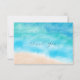 Una simple, elegante, tarjeta de agradecimiento de boda con guión moderno que presenta un fondo de acuarela pintada de un paisaje de playa en aqua azul verdoso. Una opción clásica para una boda de playa, boda de destino o boda de fuga de playa.