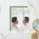 Tarjeta De Agradecimiento Elegante verde sabio, flores blancas foto boda