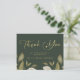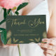 Tarjeta de agradecimiento moderna y elegante para despedida de soltera en verde oscuro bosque y dorado, que presenta un guión de caligrafía manuscrita chic con un pequeño corazón y follaje botánico verde salvia desvanecido. +++++++++++ ¡Personalízala con tu texto, nombre y mensaje en ambos lados! ++++++++++ Tenga en cuenta que el color de fondo se puede cambiar para que coincida con el esquema de color de su boda. Si se siente cómodo haciéndolo, puede cambiarlo después de seleccionar la opción PERSONALIZAR. +++++++++ Si necesita ayuda, por favor envíe un mensaje al diseñador o acceda al servicio de Diseñador en Vivo GRATUITO de Zazzle.
