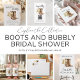 Celebre a la futura novia con estas encantadoras tarjetas de agradecimiento para despedida de soltera Boots & Bubbly, donde lo rústico se encuentra con la elegancia. Con una pareja de botas de vaquero pintadas con acuarela y una copa de champán que florece con flores cremosas, este diseño simple pero sofisticado marca el tono para una celebración con estilo. ¡Perfecto para despedidas de soltera con estilo country-chic o western con un toque burbujeante!