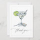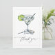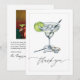 Di "gracias" con estilo y encanto utilizando esta Tarjeta de Agradecimiento para Fiesta de Despedida de Soltera con Elegante Margarita. Con un vaso de margarita pintado con acuarela y adornado con una cuña de limón, cubos de hielo, una pajita y un anillo de diamantes, este diseño combina con elegancia y un toque de diversión. La elegante escritura de "gracias" en la parte frontal se combina con un espacio personalizable para una foto en la parte trasera, lo que te permite agregar un toque personal para tus invitados. Perfecta para fiestas de despedida de soltera con tema de margaritas, bodas o celebraciones festivas, esta tarjeta es una forma encantadora de mostrar tu gratitud.