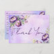 Tarjeta de agradecimiento de boda elegante morada, tarjeta de agradecimiento de lluvia de boda, flores de glicina y peonías de color lila claro acuarela