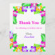 Esta elegante tarjeta de agradecimiento de cumpleaños tropical es perfecta para un cumpleaños de verano moderno. El diseño simple presenta flores amarillas, púrpuras y magenta en flor con tipografía colorida elegante sobre un fondo blanco.