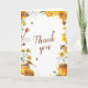Las abejas revolotean entre frascos de miel, cucharones, panal y flores amarillas en esta tarjeta de agradecimiento para una despedida de soltera para expresar su gratitud a sus invitados por venir a su despedida de soltera u otro evento. Ideal para una despedida de soltera de "encontró a su miel", primavera o verano, floral amarilla o celebración de boda con tema de abejas. Esta tarjeta también se puede personalizar para una fiesta de cumpleaños u otra celebración primaveral de abejas. Disponible con productos coincidentes.