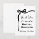 Una tarjeta moderna en blanco y negro de agradecimiento para la fiesta de despedida de soltera con borde de lazo negro Ella está atando el nudo. Plantillas que facilitan cambiar el texto: fuentes y colores, con un lazo lindo y tipografía de letra cursiva.