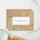 Tarjeta de agradecimiento empresarial suave de hojas de primavera. Con delicadas hojas de acuarela que enmarcan su mensaje de agradecimiento en un texto elegante. Puede personalizar con su propio mensaje de agradecimiento y nombre en el reverso o, si lo prefiere, agregar su propio mensaje manuscrito eliminando el texto. Una forma perfecta de decir gracias a sus clientes.