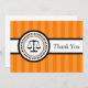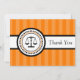 Tarjeta de agradecimiento legal "Rayas Escalas de Justicia" (Naranja)...Esta chic tarjeta de agradecimiento legal es la manera perfecta de decir gracias a todos sus amigos y familiares por su amor y apoyo en el momento de su graduación de la facultad de derecho. También son excelentes tarjetas de agradecimiento para que las utilicen las firmas de abogados. Vea WindyCityStationery.com para nuestra línea completa de tarjetas de agradecimiento "Rayas Escalas de Justicia" en una amplia gama de colores, así como invitaciones a juego, sellos postales y más.
