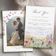 Esta tarjeta de agradecimiento para bodas presenta un paisaje montañoso de acuarela y un prado de flores silvestres en flor. Diseñada para bodas de destino en la montaña, ceremonias en parques nacionales y celebraciones al aire libre rústicas, la estética se centra en un tema natural escénico y orgánico.