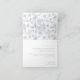 Monograma Escudo blanco vintage, boda azul polvoriento tarjeta de agradecimiento con recubrimiento de motivos florales de chinoiserie.