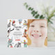 Tarjeta de agradecimiento de foto de fiesta de cumpleaños con tema de circo vintage moderno. El diseño presenta una fotografía del niño que cumple años, con ilustraciones de acuarela vintage de actos de circo. ¡El mensaje de agradecimiento es fácil de personalizar utilizando la plantilla proporcionada!