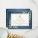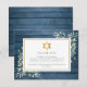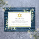 Tarjeta de agradecimiento memorial de funeral judío con hojas de vegetación en acuarela sobre un fondo de madera rústica azul. Puedes personalizarla con tu propio mensaje de agradecimiento. Diseñado por Thisisnotme