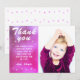 Cute Pink Star Metallic Girly Febrero Foto Gracias Tarjeta. El diseño tiene estrellas en un fondo rosado, morado y metálico. Inserte su foto en la plantilla y agregue el nombre de su hijo. Cambie el mensaje de agradecimiento si lo desea.