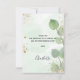 Una tarjeta de agradecimiento para un cumpleaños número 50 (o cualquier edad). Un fondo verde acuarelado decorado con follaje de eucalipto y polvo dorado brillante falso. En la parte delantera, un texto manuscrito en negro grande y el texto: Gracias, su texto, título y fecha.