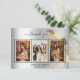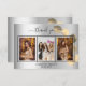 Añade 3 fotos de tu cumpleaños, tamaño vertical, una fecha, nombre y la nota de agradecimiento. Un fondo falso plateado con texto y marco negro, un eucalipto dorado. El texto: Gracias en la parte delantera y tu nombre en la parte trasera está escrito con un elegante guión con letras a mano con barras.
