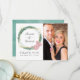 Tarjetas de agradecimiento de boda magnéticas de eucalipto verde geométrico de moda y rosas rosadas con marco geométrico dorado.