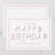 En la parte delantera se lee "Un cumpleaños muy feliz a una niña querida" y en la parte trasera se lee "Espero que tu día sea especial". Los bailarines rosas componen el Y en un entorno y fronteras felices y rosas, lo convierten en la elección perfecta para su bailarín.