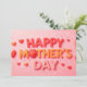 Un diseño de celebración del Día de la Madre con texto colorido, corazones y chispas en un fondo rosado, ideal para propósitos de apreciación estacional y festivo.