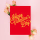 La tarjeta de saludo el día de San Valentín presenta un mensaje de "Feliz Día de San Valentín" en un elegante guión de Relieve metalizado dorado en un fondo rojo.