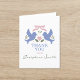 Celebre el viaje hacia el matrimonio con un aire de gracia y aprecio con la tarjeta de agradecimiento para baby shower "Love Birds". Enclavados en una viñeta romántica, dos pájaros azules se unen junto a un corazón ilustrado con amor, simbolizando la compañía y el afecto. Esta tarjeta encarna el espíritu alegre de sus próximas nupcias y ofrece una avenida perfecta para expresar su gratitud a amigos y familiares. Con su mezcla de encanto clásico y diseño moderno, es el token ideal de agradecimiento para su baby shower, personalizable para reflejar su historia de amor única.