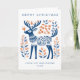 Sutil tarjeta de ciervo escandinava linda en azul clásico y naranja.