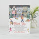 Esta tarjeta de agradecimiento para fiesta de bebé con el tema festivo de "se necesita un pueblo" cuenta con un pueblo/ciudad de Navidad con gente comprando regalos de Navidad, un café, teatro, muñeco de nieve y trineo. El reverso tiene un fondo rojo con patrones de nieve blancos. Personalízala según tus necesidades. Puedes encontrar productos relacionados en mi tienda.