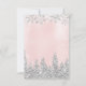 Es hora de celebrar tu tema de fiesta de compromiso de invierno gracias a este bosque de árboles de pino plateados con destellos de copos de nieve de purpurina plateada de lujo y destellos sobre un fondo metálico rosa rubor festivo y elegante, con una tipografía de fuente de letra moderna y fresca.