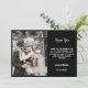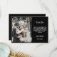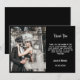 Esta tarjeta de agradecimiento para la fiesta de compromiso presenta un diseño intrigante y visualmente impactante, con un fondo negro que sirve como un lienzo dramático para la ilustración principal. La invitación en sí está hecha de papel de alta calidad y textura con un acabado aterciopelado, lo que añade un toque de lujo a la apariencia general.