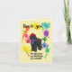 Tarjeta de agradecimiento para fiesta de cumpleaños con arte divertido de perro Labradoodle negro. Diviértete, haz un desorden, juega con un perro Labradoodle negro, qué manera de celebrar el cumpleaños de tu hijo artístico. Ahora es hora de decir Gracias. Nuestra tarjeta de agradecimiento colorida con salpicaduras de arcoíris, tiene texto lo suficientemente grande para que un niño lo lea y un interior con espacio para un mensaje escrito a mano. Edita la información importante en la parte delantera - solo usa la opción PERSONALIZAR y pon tu propio mensaje en la parte inferior. Nuestra tarjeta de agradecimiento para fiesta de arte divertido presenta a un perro Labradoodle negro que lleva un boina de artista y una bandana de lunares morados decorada con pintura. Ha contribuido a la fiesta con sus propias huellas de pintura por todas partes - ¿qué podría ser más divertido?. Esta tarjeta de agradecimiento única para fiesta de arte con un perro Labradoodle negro es perfecta tanto para niñas como para niños. Encontrarás esta tarjeta de agradecimiento para fiesta de arte junto con platos de papel, pegatinas y tarjetas de invitación en nuestra colección FESTEJO DE CUMPLEAÑ