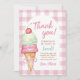 Tarjeta de Agradecimiento para Fiesta de Cumpleaños de Cuadrillé con Lazo Rosa de Helado