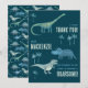 Es hora de agradecer a tus invitados por una fiesta de cumpleaños salvaje! Un divertido grupo de adorables dinosaurios, listos para personalizar con el nombre de tu hijo y mensaje de agradecimiento. Ideal para niños o niñas de cualquier edad. La parte trasera presenta un patrón de dinosaurio coincidente. Arte original de Nic Squirrell.