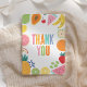 Diga gracias a amigos y familiares por asistir a la fiesta de cumpleaños de su pequeña con esta colorida tarjeta de agradecimiento con temática de frutas.