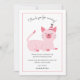 Tarjeta de agradecimiento de fiesta de cumpleaños linda para la fiesta temática de gato de su hijo. Ilustración de un gato rosa con una sonrisa en su cara que lleva un sombrero de fiesta. El texto de arriba dice "gracias por venir!" y el texto de abajo entra en más detalle agradeciendo al amigo por asistir al evento y por el regalo que trajo. Puede agregar el nombre de su hijo en la parte inferior. Los textos son fácilmente editables en línea.