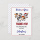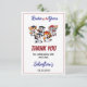 Di gracias con estilo con esta tarjeta de agradecimiento de primer cumpleaños de béisbol de Nuestros Pequeños Animales. Con un tema de béisbol con animales lindos, es perfecto para enviar mensajes sinceros a amigos y familiares después del gran día de su pequeño bateador. Genial para niños o niñas, estas tarjetas agregan un toque divertido y coordinado a su celebración de primer cumpleaños con tema de béisbol.