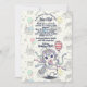 Una caprichosa invitación de cumpleaños con temática de unicornio que incluye un lindo unicornio con un globo, un borde de estilo vintage y garabatos hechos a mano de castillos, estrellas y regalos. Los suaves colores pastel crean el tono para una celebración mágica y brillante.