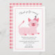 Tarjeta de agradecimiento de fiesta de cumpleaños linda para la fiesta temática de gatos de su hijo. Ilustración de un gato rosa con una sonrisa en su cara que lleva un sombrero de fiesta. El texto de arriba dice "gracias por venir" y el texto de abajo entra en más detalle agradeciendo al amigo por asistir al evento y por el regalo que trajo. Puede agregar el nombre de su hijo en la parte inferior. Los textos son fácilmente editables en línea.